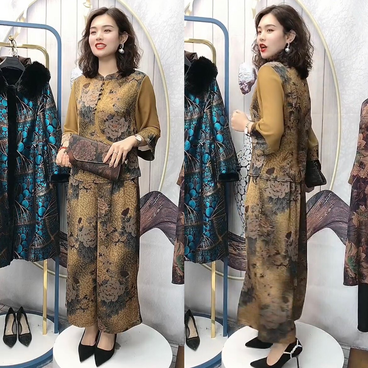 国风上衣时尚 新中式 套装 妈妈春装 早秋外套马甲 三件套中老年女装