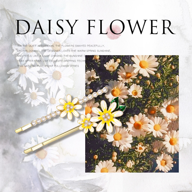 为您提供商品Cercoo 发夹 奢蔻雏菊清欢滴油工艺珍珠百搭刘海一字侧边夹一对装的详细介绍,