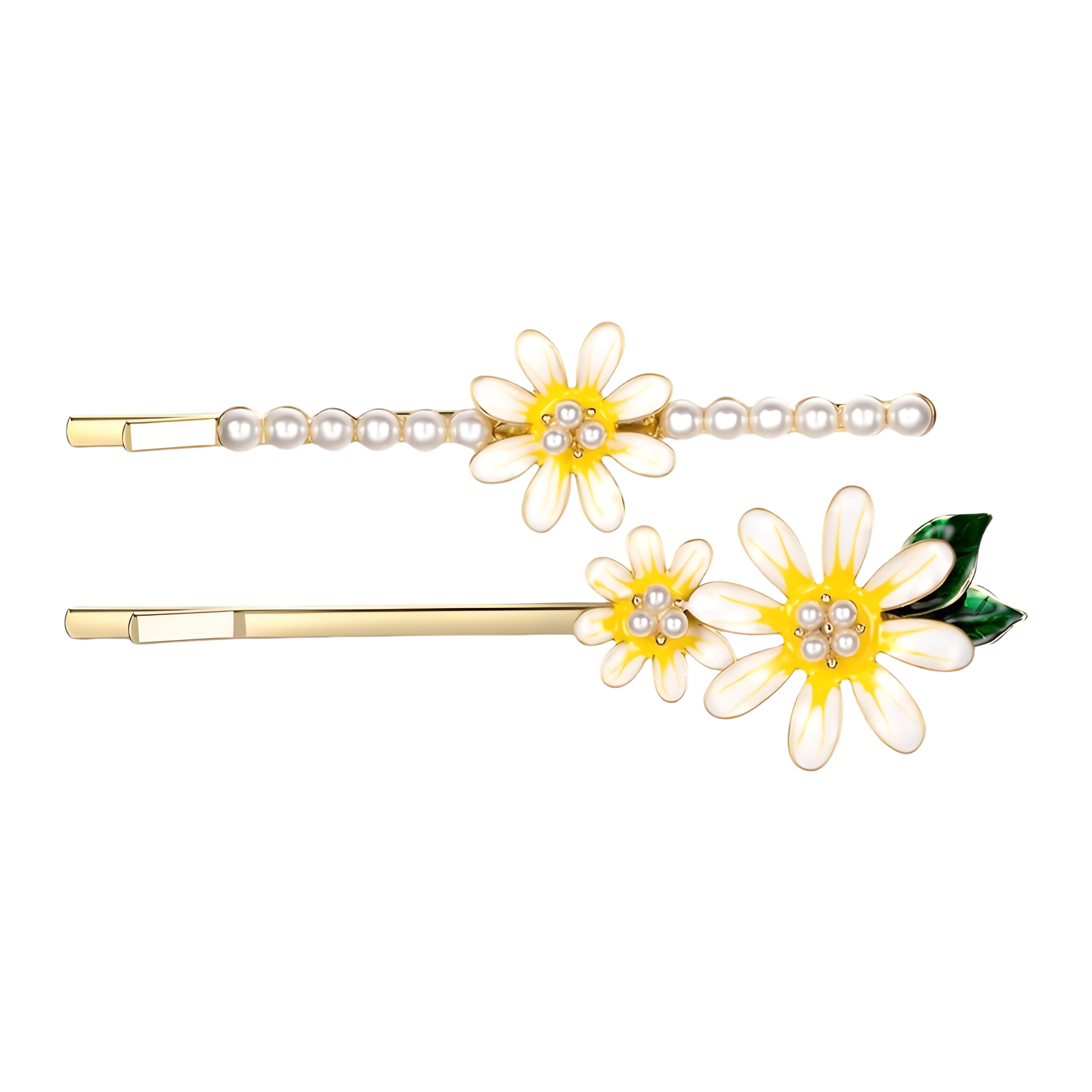 Cercoo 发夹 奢蔻雏菊清欢滴油工艺珍珠百搭刘海一字侧边夹一对装