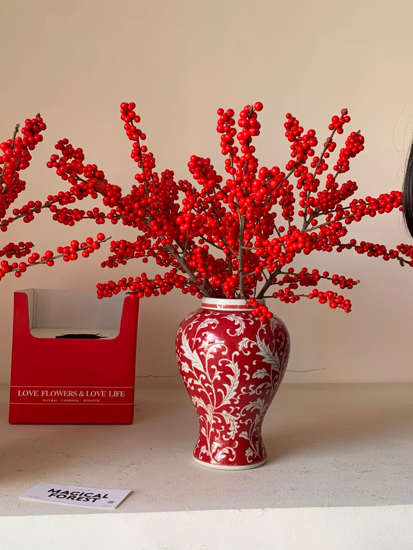 北美冬青鲜切花真花水培红果枝宵花瓶乔迁支持一件代发 顺丰快递