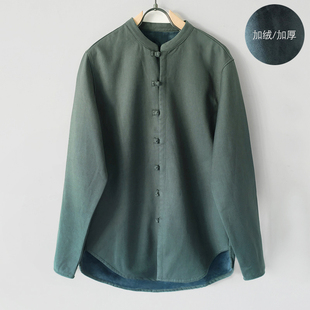 秋冬棉麻男休闲加绒加厚盘扣唐装 青年潮流中式 长袖 立领衬衣 衬衫由