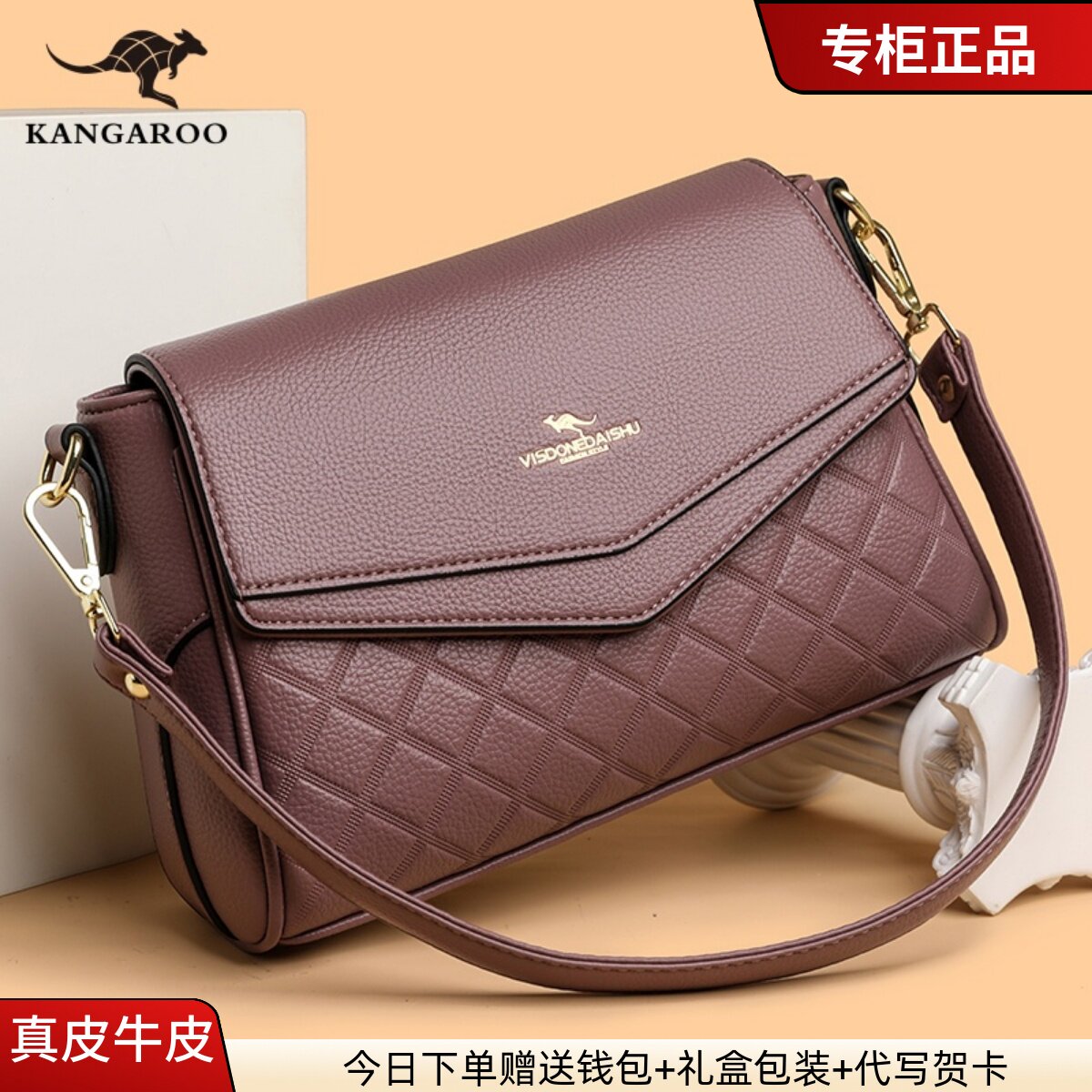 洋气中年送妈妈款 软皮大容量 单肩斜挎包时尚 袋鼠真皮女包2025新款