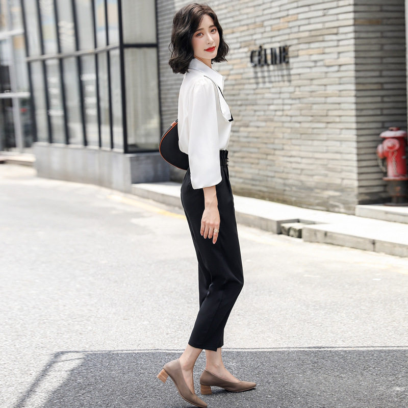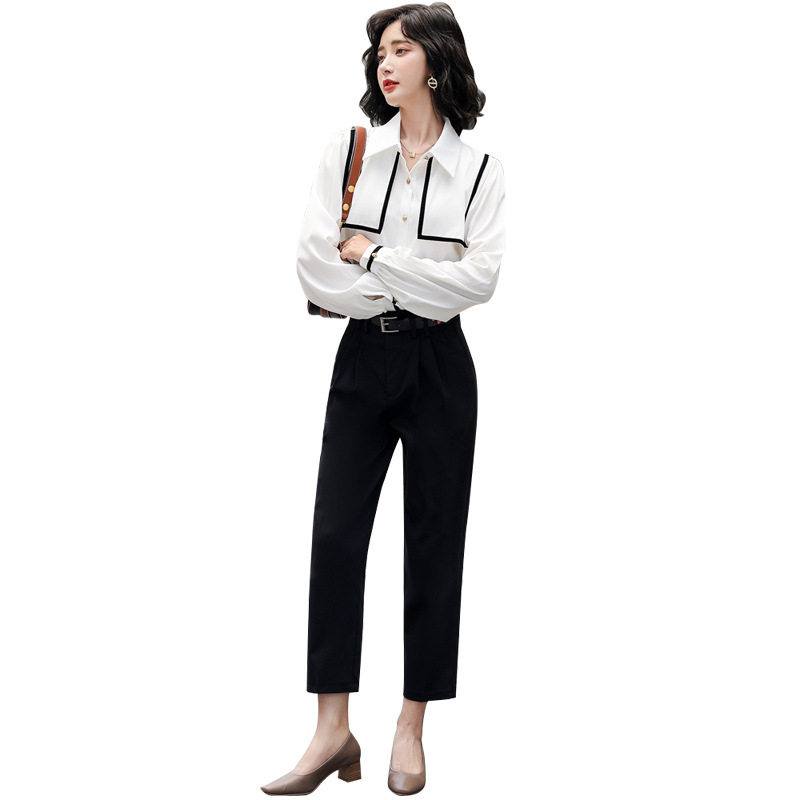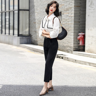 2021早秋新款 女装 气质套装 两件套 轻熟白衬衫 小脚裤 韩版 时尚