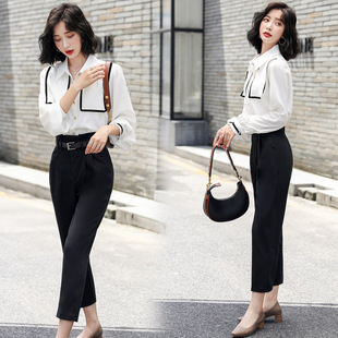 2021早秋新款 女装 气质套装 两件套 轻熟白衬衫 小脚裤 韩版 时尚由