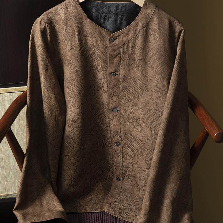 丝艺 女桑蚕丝包扣嵌绳外套上衣早春 双面穿海浪纹香云纱真丝开衫