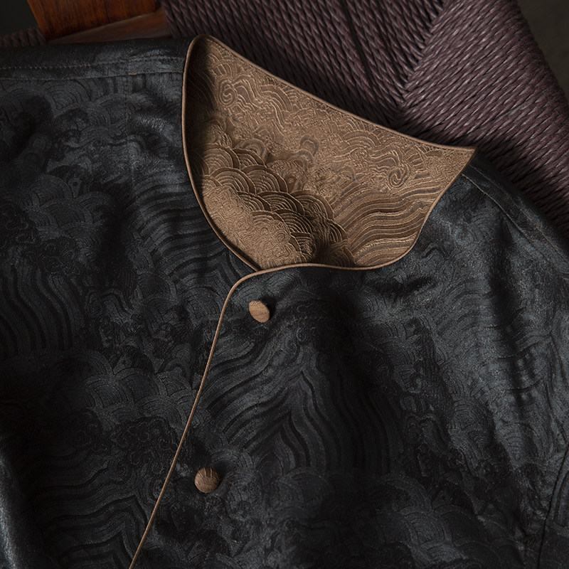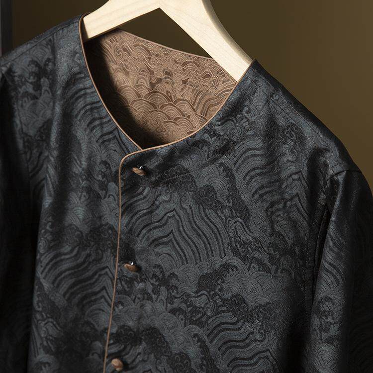 为您提供商品丝艺 女桑蚕丝包扣嵌绳外套上衣早春 双面穿海浪纹香云纱真丝开衫的详细介绍,