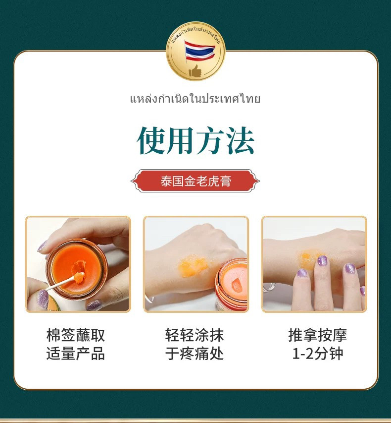 淘宝网为您提供商品进口虎牌药膏thongtiger加强版 肩颈虎油 正品 正宗泰国金老虎膏原装的详细介绍,