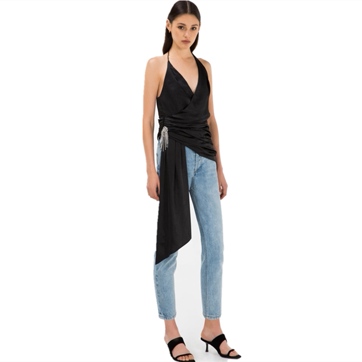 为您提供商品MISHA新款 黑色吊带性感V领高腰赫本风绑带流苏女木兰 折的详细介绍,