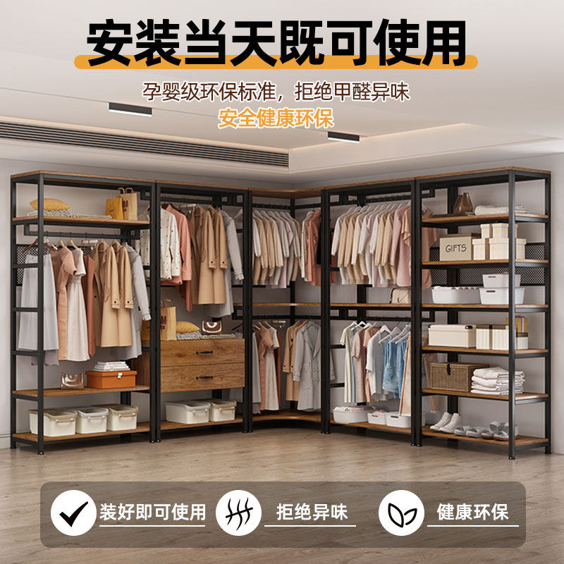 衣帽架家用卧室简易置物架落地式 网红衣柜 挂衣架组合衣帽间开放式