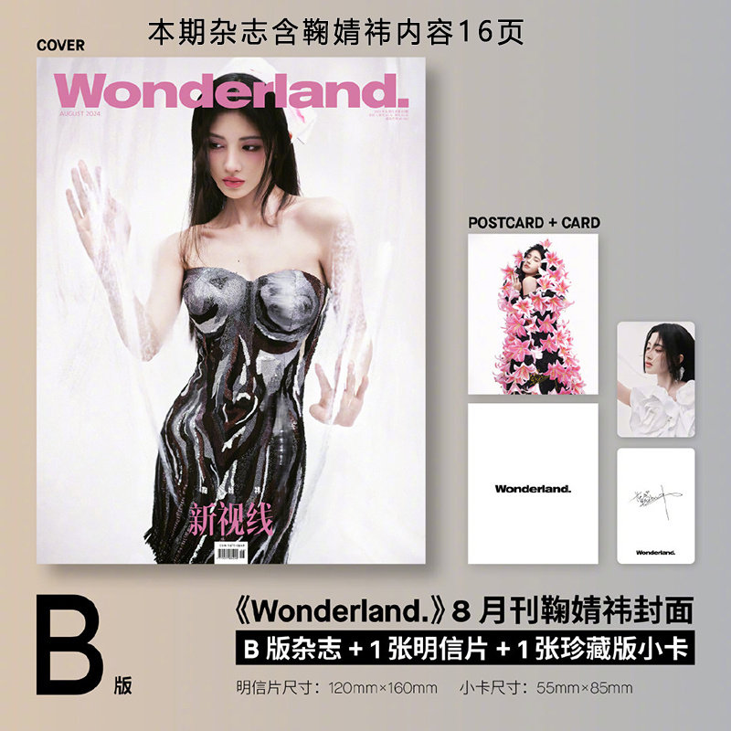官方正版 新视线Wonderland.杂志2024年八月 隐藏卡 C套装 8月 内页16P B封面 新视线 2张明信片 2张小卡 官方版 鞠婧祎杂志