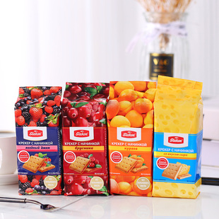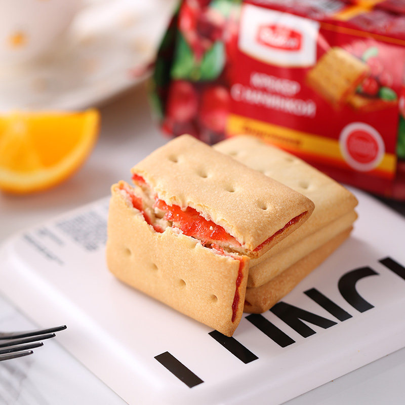 俄罗斯进口夹心饼干果酱水果果肉夹心饼早餐小麦饼干休闲小吃零食
