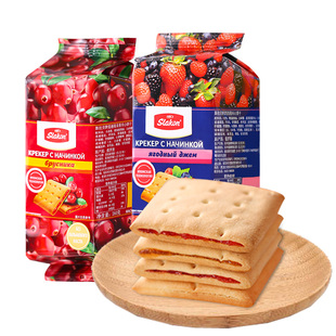 俄罗斯进口夹心饼干果酱水果果肉夹心饼早餐小麦饼干休闲小吃零食由