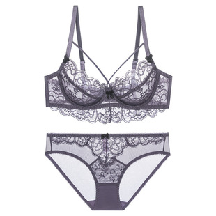 为您提供商品蕾丝聚拢大码 文胸大胸显小无海绵E杯胸罩女 超薄性感内衣套装 法式的详细介绍,