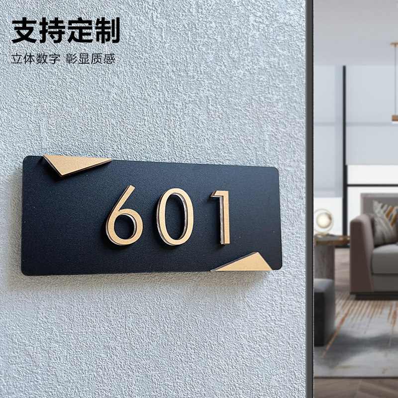 牌家用 亚克力酒店宾馆别墅创意工作室民宿轻奢宿舍logo门牌号订制入户房间包厢住宅免打孔 门牌号码 门牌定制