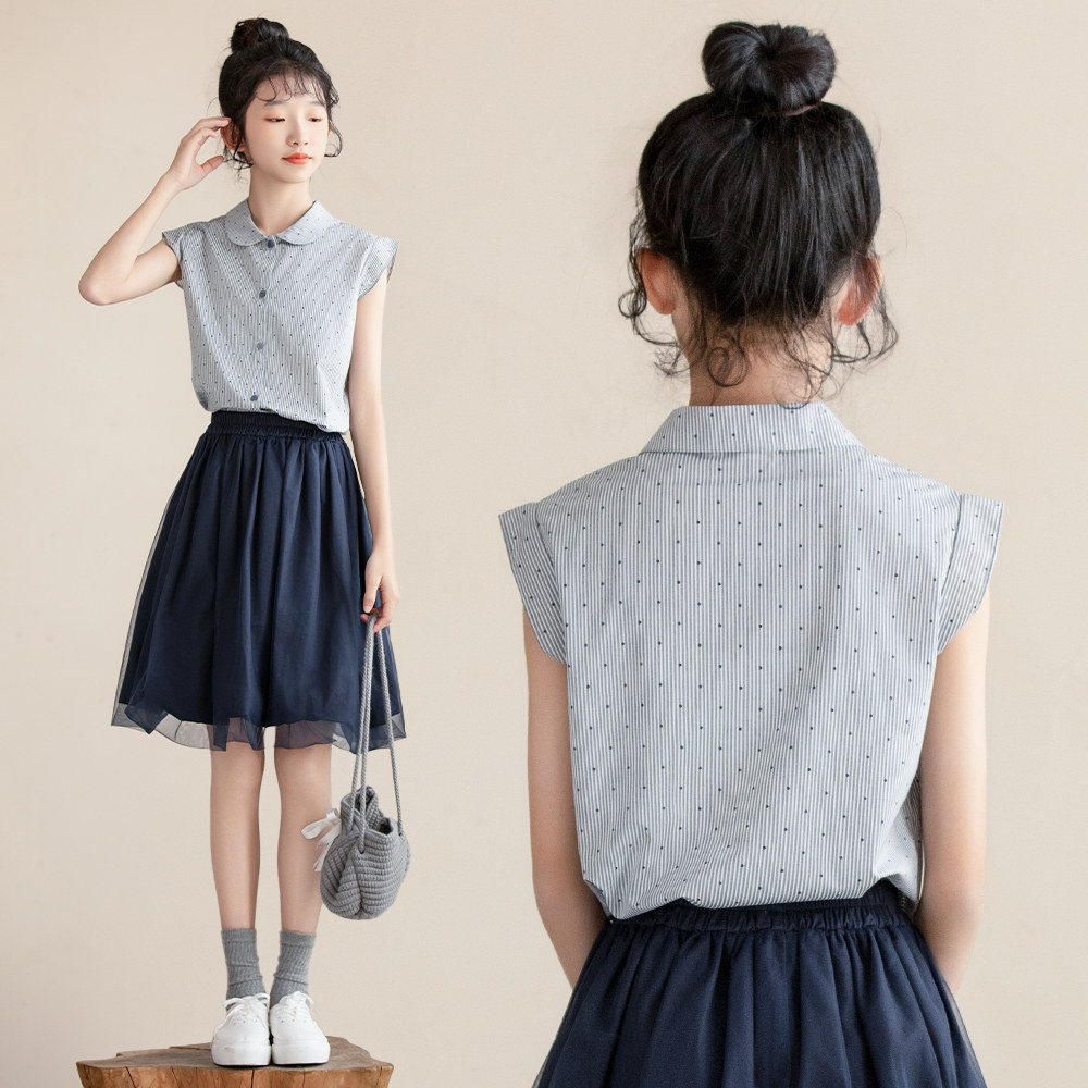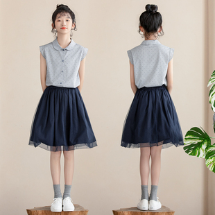 裙子洋气中大童学院风衬衫 女童夏装 套装 2026新款 半身裙两件套 短款