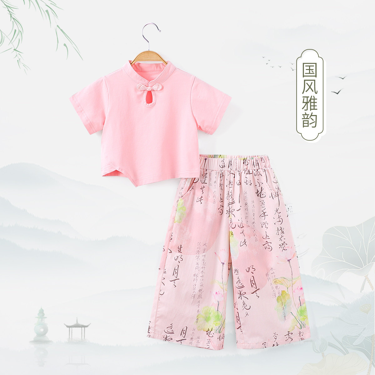 为您提供商品套装 轻国风时髦防蚊裤 新中式 两件套薄款 女童洋气短袖 长裤 童装的详细介绍,