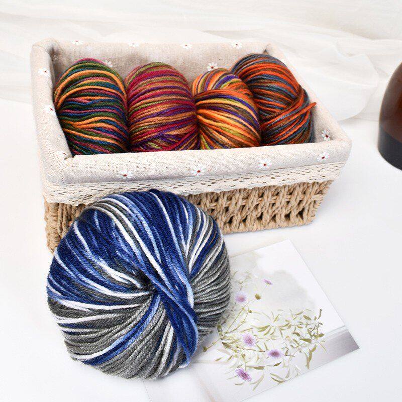 段染毛线晴纶线中粗毛线手工编织棉鞋 渐变花色宝宝毛线 勾钩针拖鞋