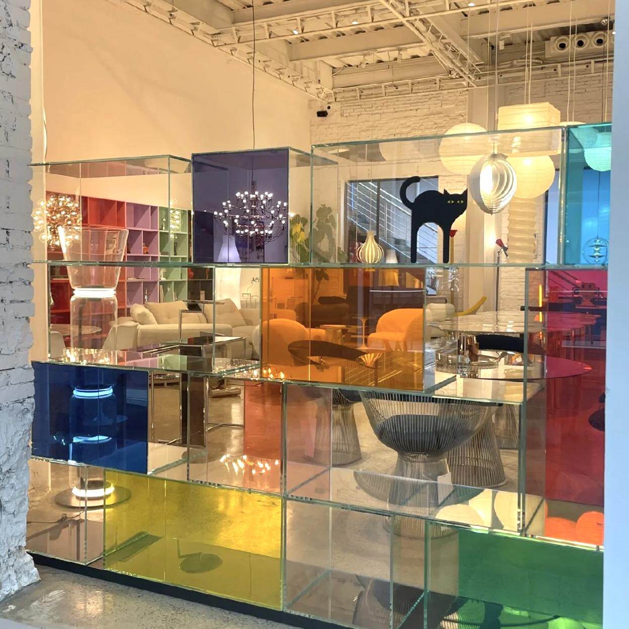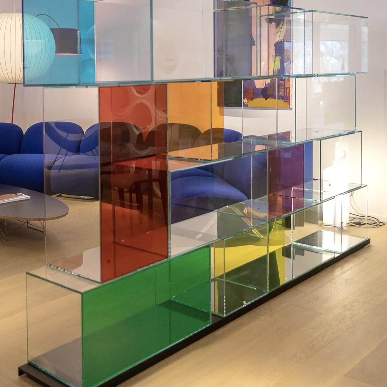 彩色透明玻璃展示架艺术置物收纳柜书架客厅陈列柜 glasmigisa意式