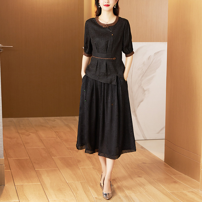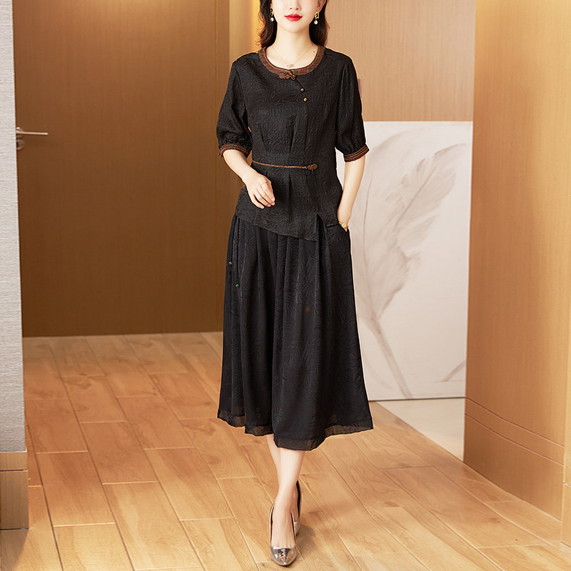 为您提供商品香云纱夏季 中老年刺绣上衣半身裙女洋气妈妈桑蚕丝两件套 真丝套装的详细介绍,