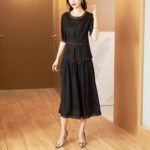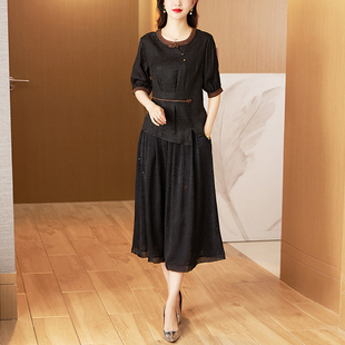 香云纱夏季 中老年刺绣上衣半身裙女洋气妈妈桑蚕丝两件套 真丝套装