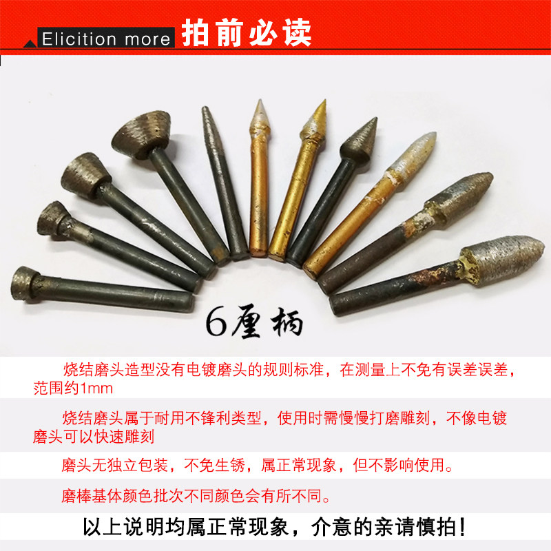 烧结金刚石磨头石材雕花刻字墓石碑打磨头子弹马蹄笔尖型工具丁型由