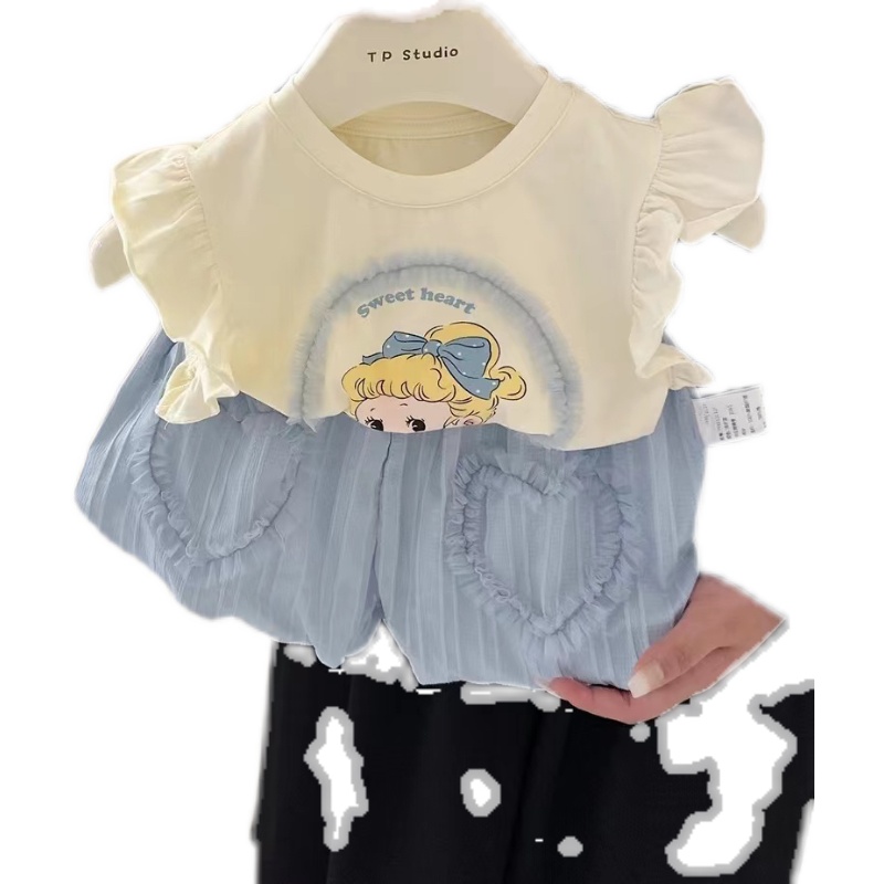 儿童夏装 女童夏季 两件套 上衣短裤 女宝宝洋气卡通短袖 套装 2025新款