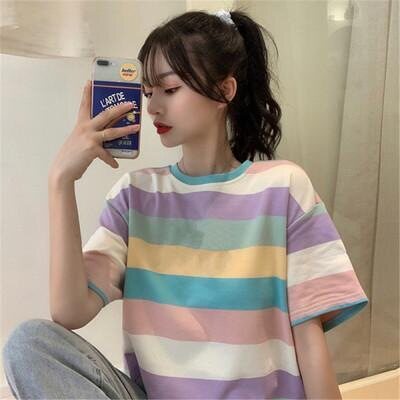 彩虹休闲宽松短袖 2021春夏季 新款 韩版 T恤女潮学生上衣服女装