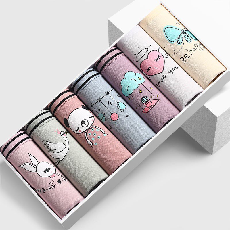 95%棉内裤 女中腰性感少女透气日系可爱学生女士三角短裤 头 7条装