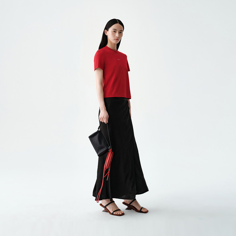 indicia标记商场同款 纯棉红色亲肤基础T恤上衣F2B5TX095F 25夏新款由