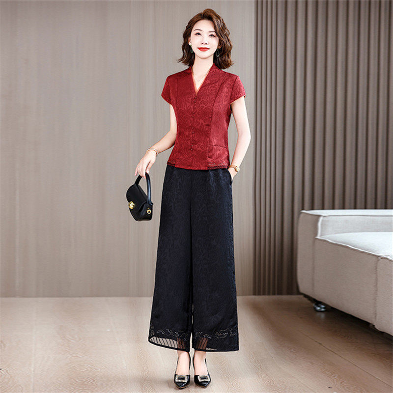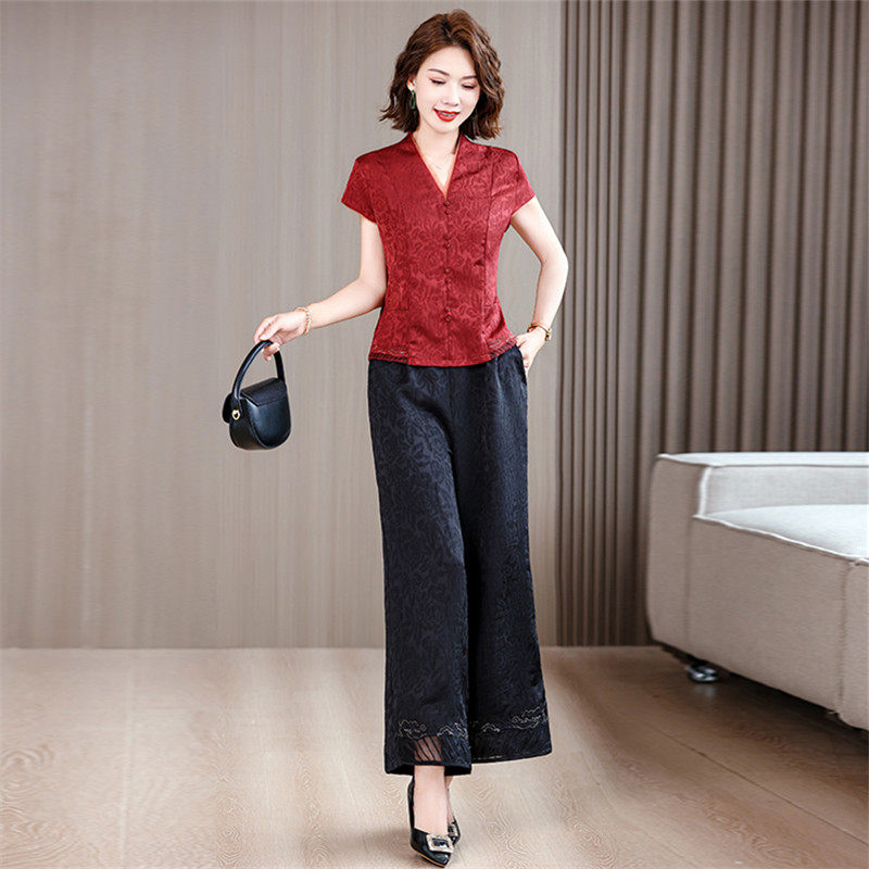 香云纱套装 妈妈时尚 高端品牌清仓女装 杭州大牌真丝桑蚕丝两件套 裤由