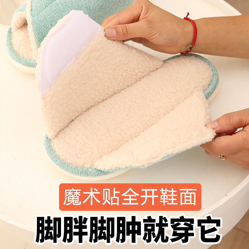 秋冬季 脚肿专用 居家保暖棉拖鞋 脚浮肿宽松 男女室内毛毛孕妇鞋由