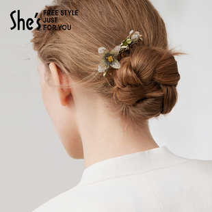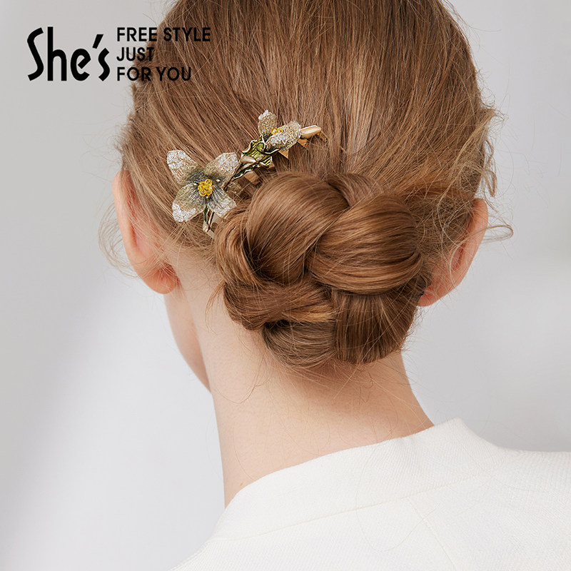shes茜子奥莱莫奈印象原创轻奢刺绣花朵发梳插梳高端盘发刘海发夹由