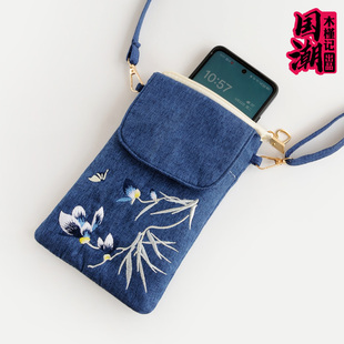 中国风刺绣花包女棉麻布斜挎包小包零钱包贴身手机包民族风手机袋由