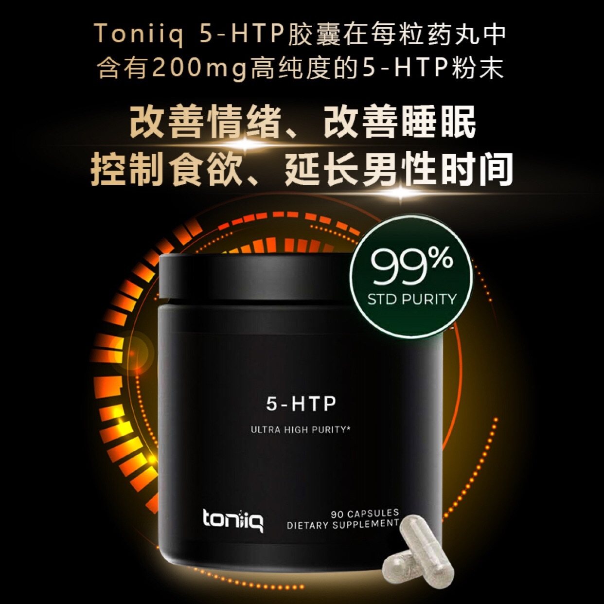 黑罐5 200mg减轻压力改良睡眠调节情绪控制冲动时间 1瓶装 HTP由