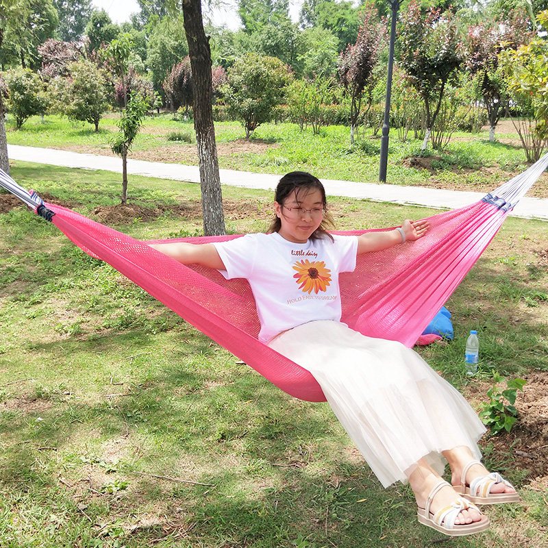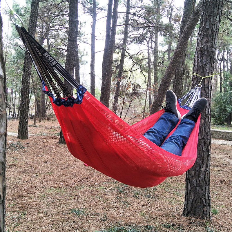 冰丝吊床户外秋千单人超轻野营沙滩冰凉透气网布吊网睡床舒适加宽