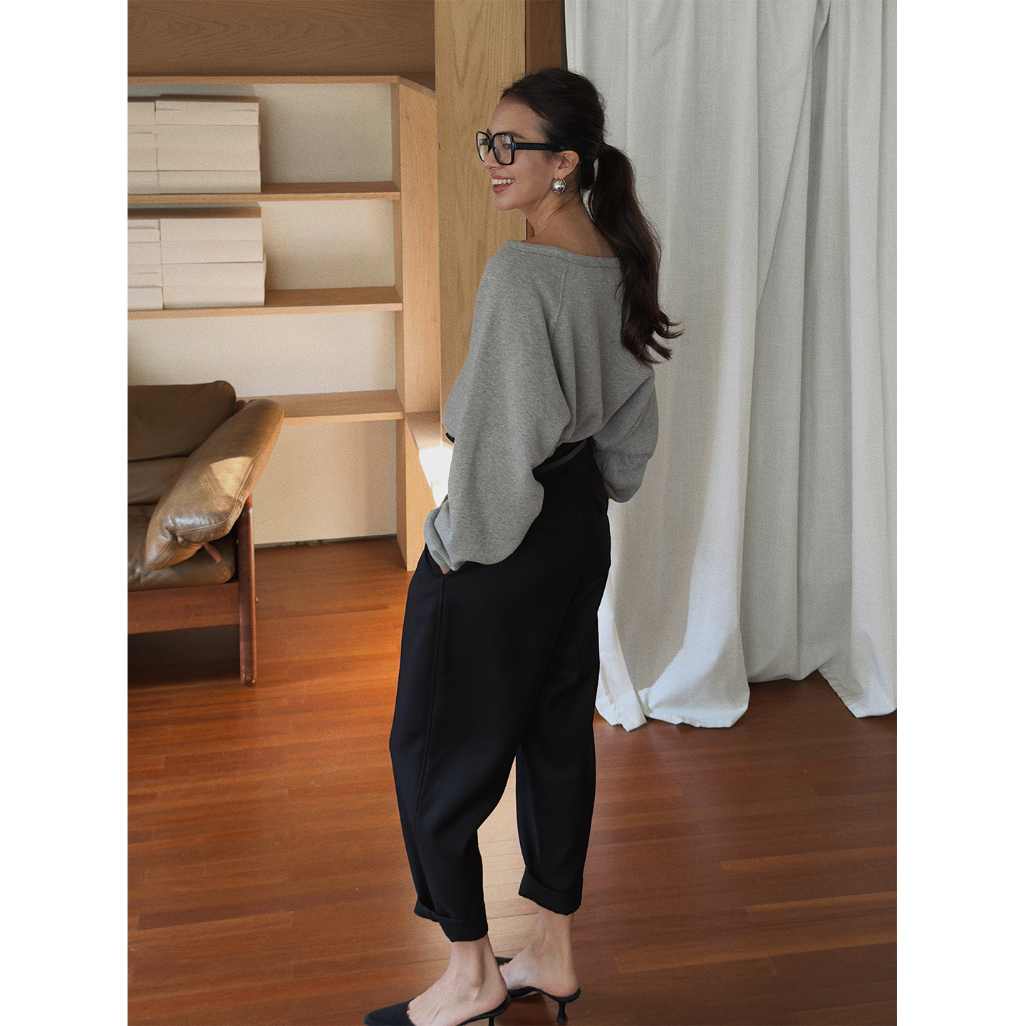 长袖 套头100%面内搭打底卫衣 时髦一字领露肩宽松慵懒短款 SOTHEA由