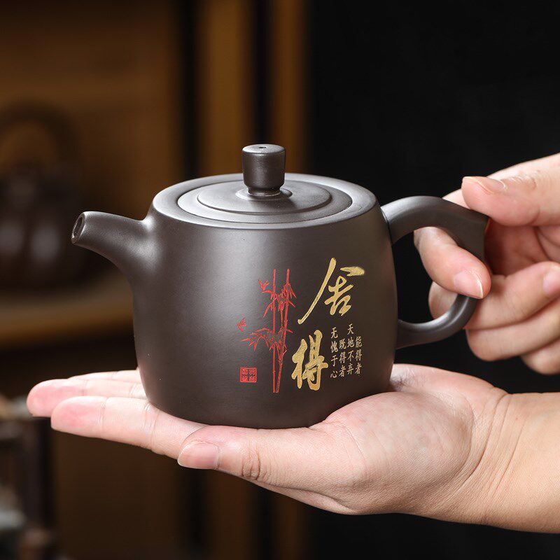 手工描金原矿紫砂壶老紫泥复古大容量貔貅壶球孔家用功夫茶具单壶由