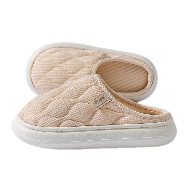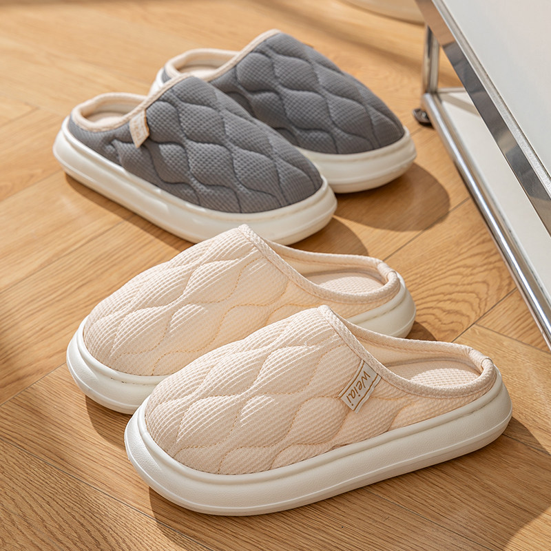四季 女情侣居家防滑室内棉麻布亚麻踩屎感厚底男 春秋冬季 家用拖鞋由
