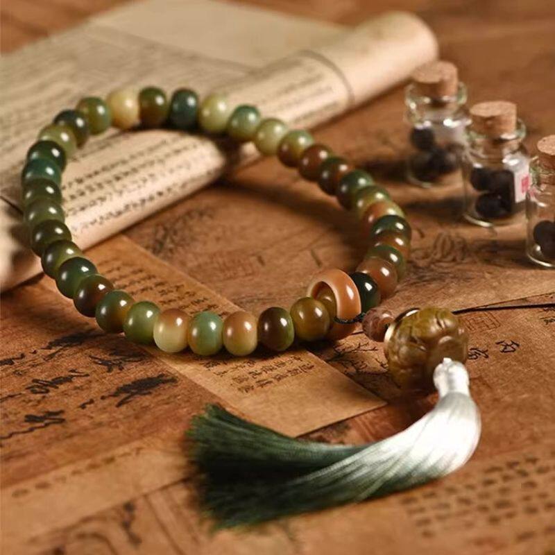 念珠 敦煌问天菩提根手持手串女生盘玩文玩风化白玉菩提子手链男款