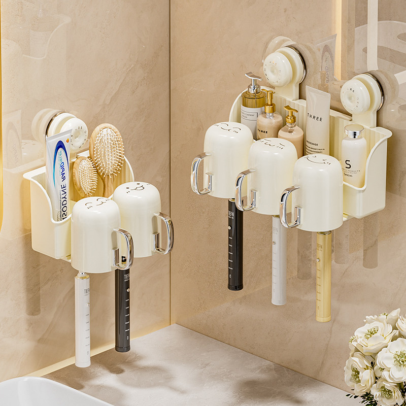 免打孔卫生间牙具座牙膏收纳浴室 牙刷牙杯壁挂置物架电动牙刷套装