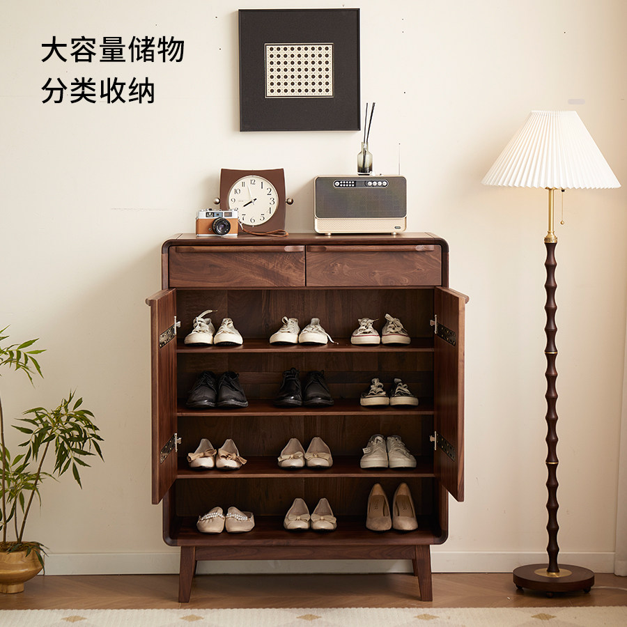 柜实木门口入户玄关大容量收纳柜家用 西提北美黑胡桃木鞋