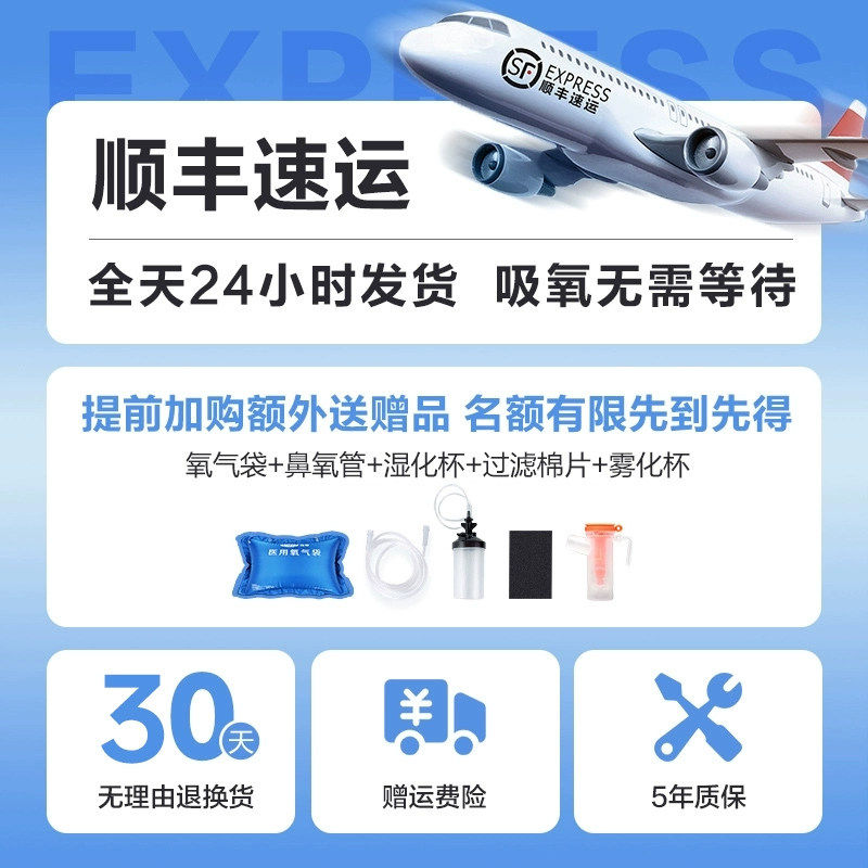 5AW 鱼跃5L升医用级制氧机吸氧机氧气机瓶袋家用老人呼吸带雾化8F