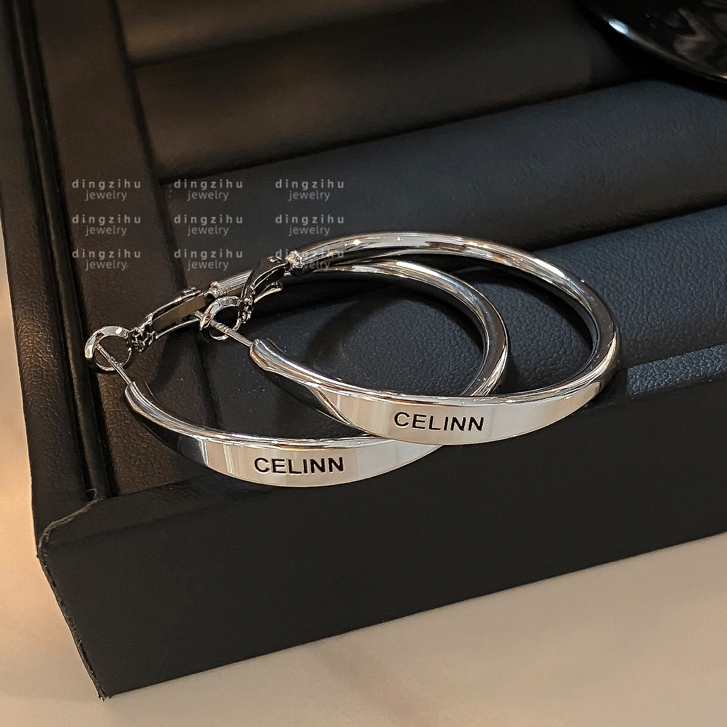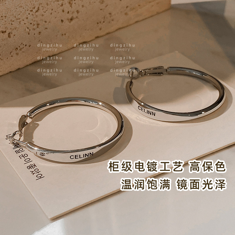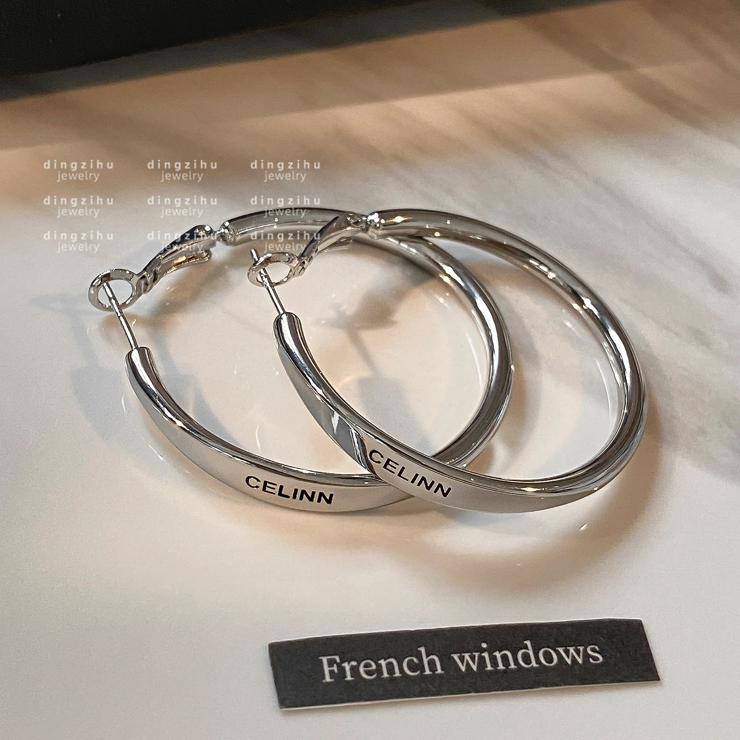 夸张银色大圈圈耳环女高级感轻奢气质大气耳圈金属耳扣巨好看耳饰