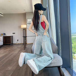 减龄宽松高腰显瘦休闲直筒裤 女春夏秋2026新款 破洞阔腿牛仔背带裤