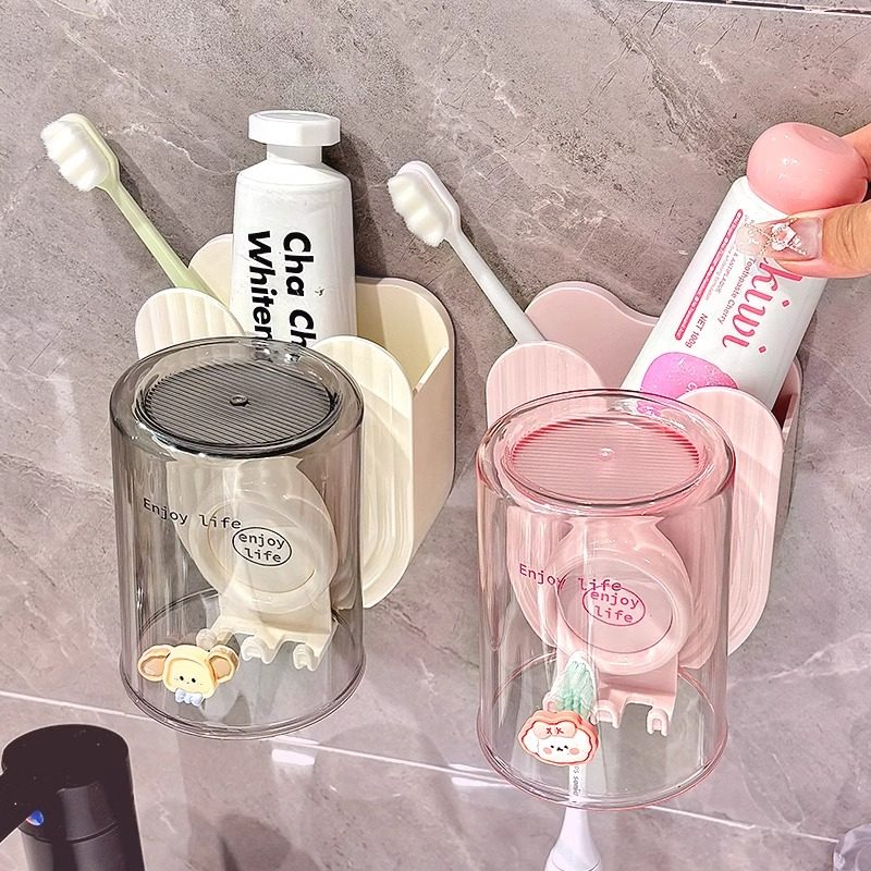 日式 牙具架子卫生间刷牙杯子挂墙漱口杯牙杯 电动牙刷置物架壁挂式由