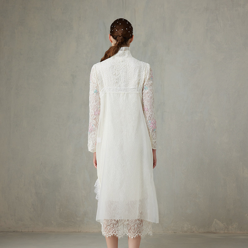 女色蕾丝刺绣连衣裙女高领显瘦两件套2513067 Charfen朝峰春新款由