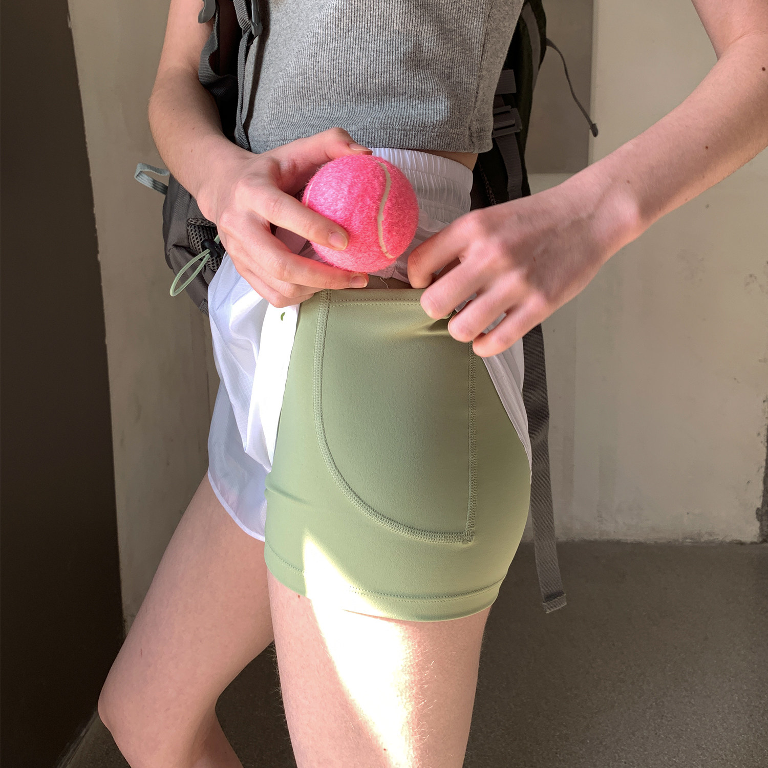 square 女 houlest防走光抗菌速干透气假两件健身跑步网球抽绳短裤由