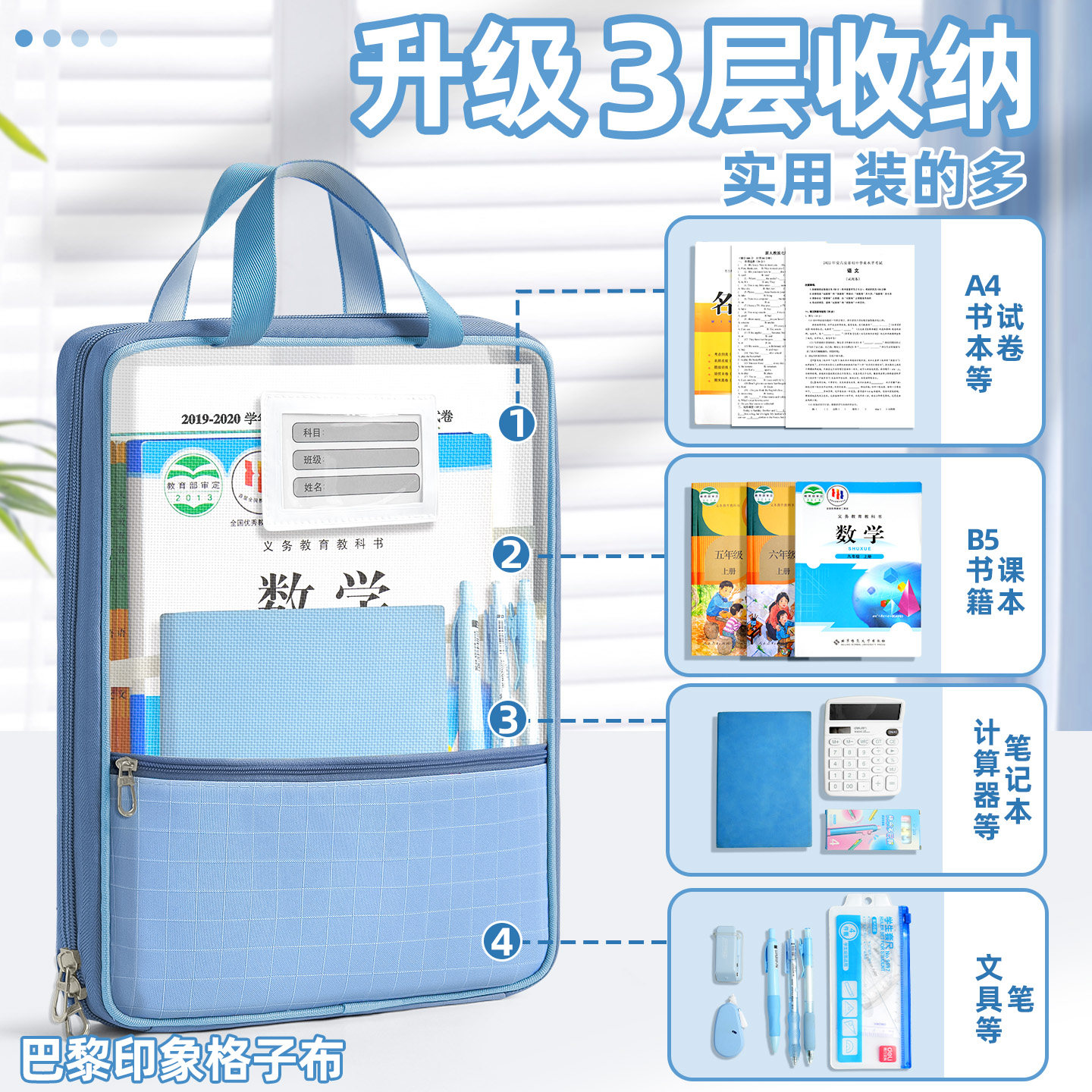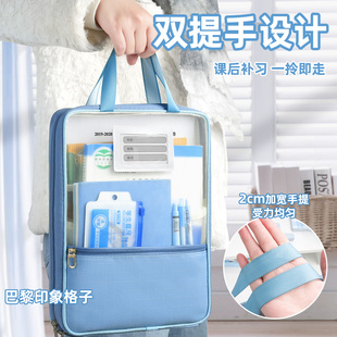 小学生初中生专用手提书袋高中生试卷资料书本作业袋子档案科目分类袋 双层大容量A4透明网纱文件收纳袋拉链式