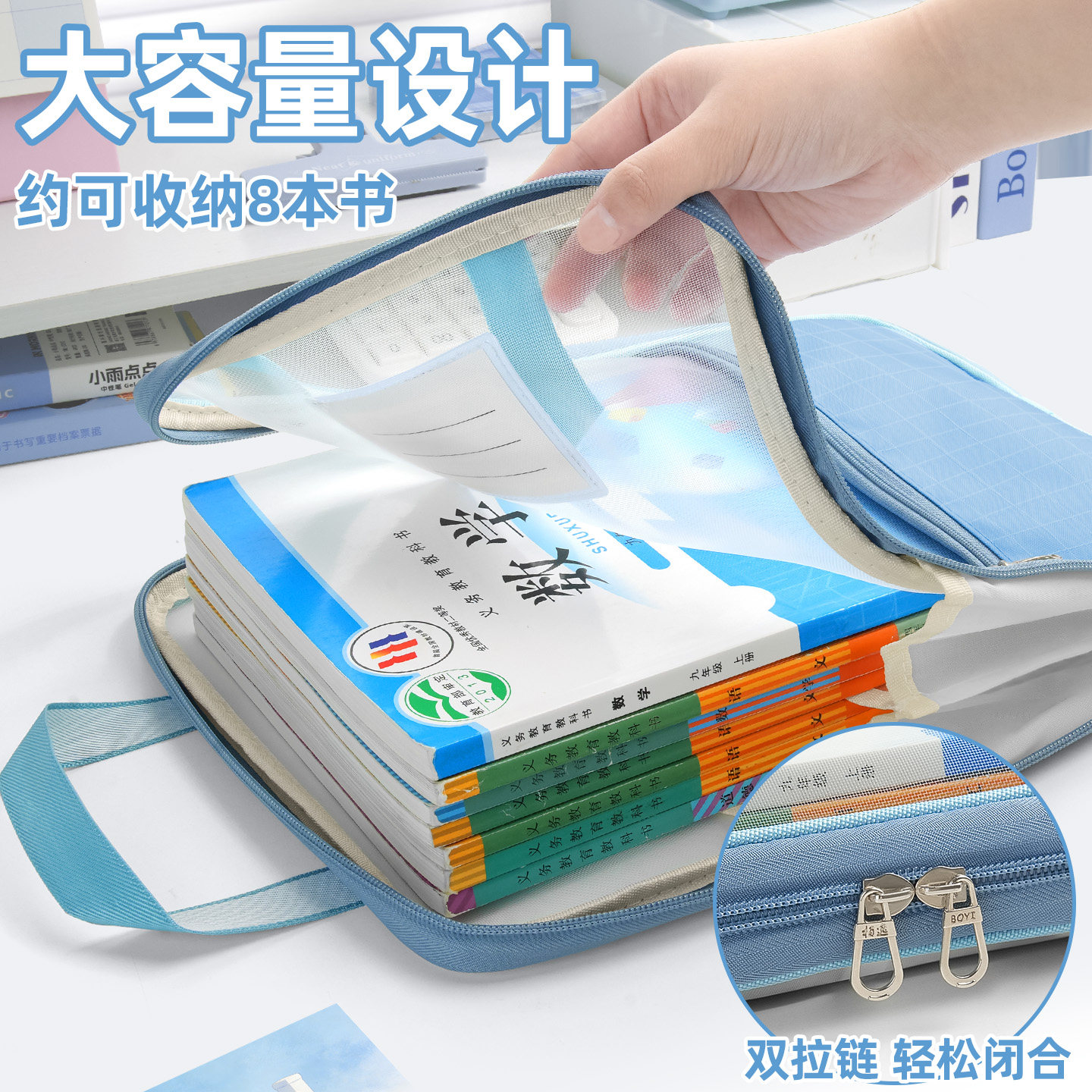 大容量文件袋拎书袋书本收纳袋一年级作业袋初中生补习班补课包 U型学科科目分类袋大开口小学生手提袋拉链式由