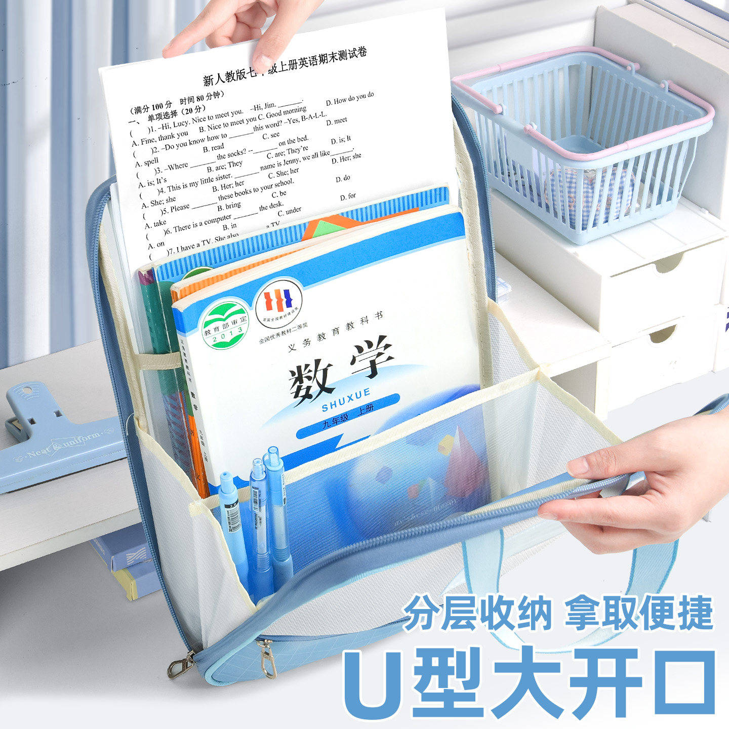 大容量文件袋拎书袋书本收纳袋一年级作业袋初中生补习班补课包 U型学科科目分类袋大开口小学生手提袋拉链式